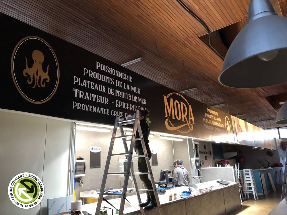 Philippe et Agnès Mora nous ont sollicité pour la création de leur charte graphique et leur stand au marché couvert d'Andernos-les-bains.