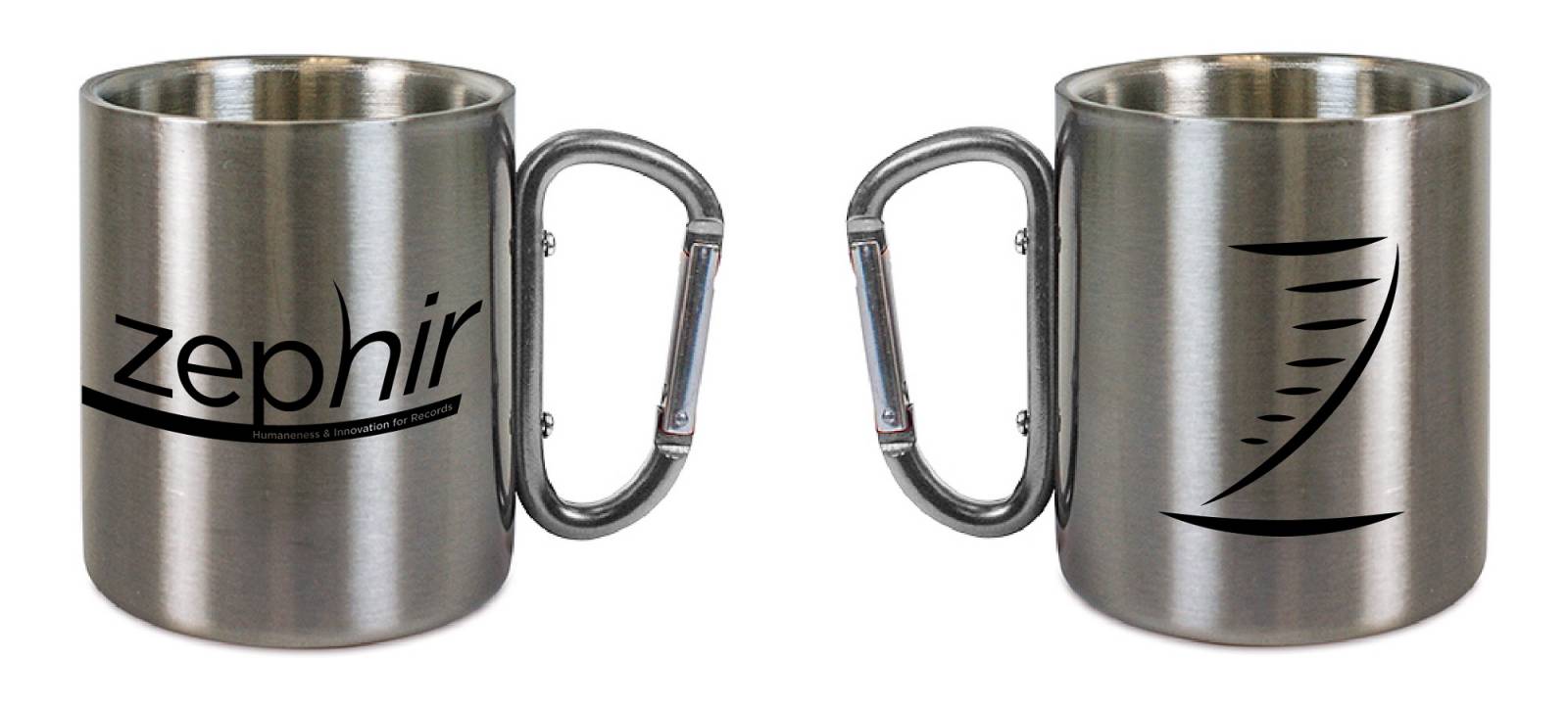Pour les goodies personnalisés, des mugs en métal avec mousqueton très originaux, ainsi que des badges ont été choisis et personnalisés par sublimation.