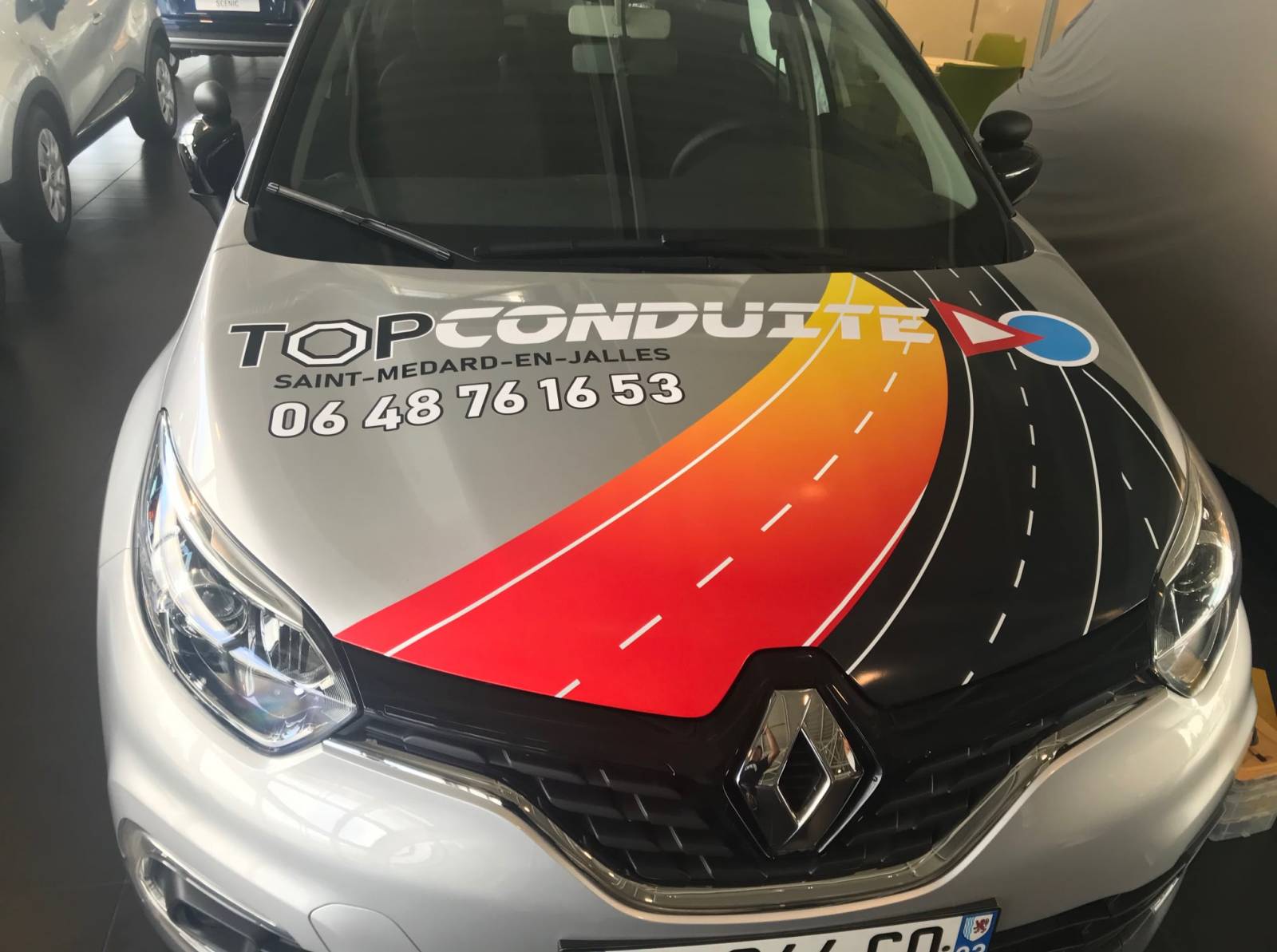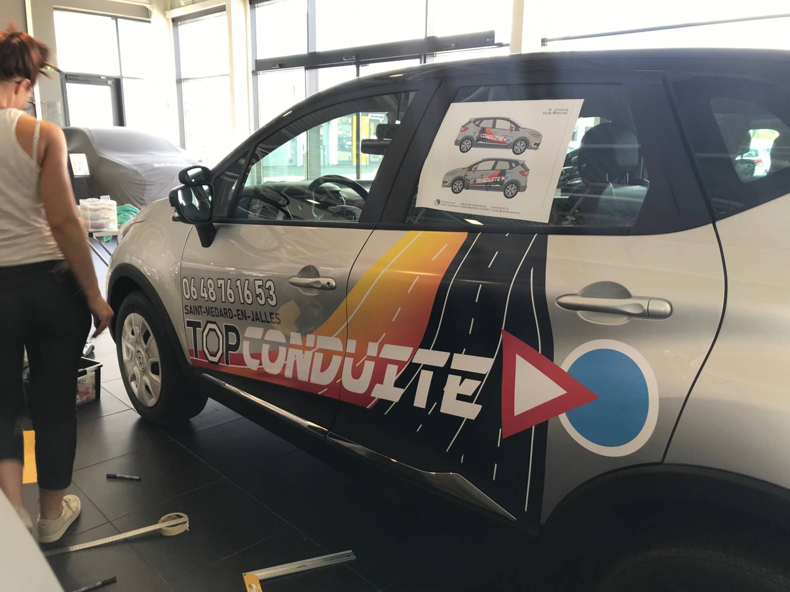 Après relooking de l'identité graphique, marquage des véhicules en concession pour l'auto-école Top Conduite de Saint-Médard -en-Jalles près de Bordeaux.