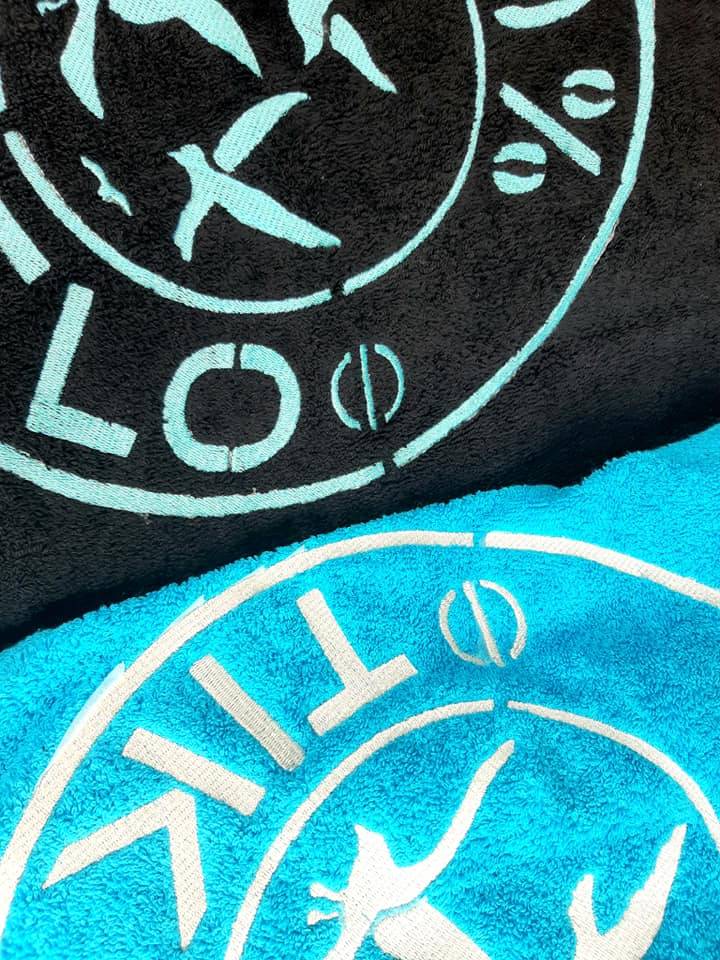 Le choix de la broderie s'est imposée pour le marquage des draps de bain ainsi que des vestes zippées. Le client souhaitant mettre en avant son logo, nous avons opté pour la broderie grand format. Le rendu est magnifique et d'une grande qualité.
